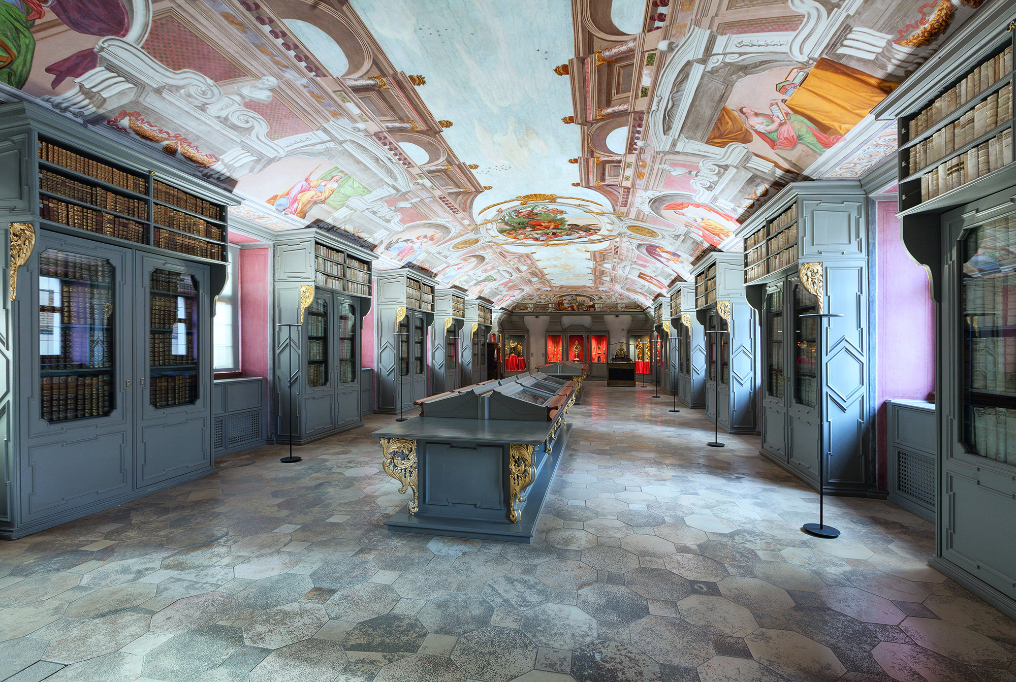 Die 1694 von Johann Carlone geschaffenen und 1984 bis 1986 aufwändig freigelegten Fresken der einstigen Fürstbischöflichen Bibliothek zeigen eine Scheinarchitektur mit Personifikationen verschiedener Künste und Wissenschaften. Der großzügige Raum vermittelt mit der historischen Ausstattung, dem barocken Buchbestand und kostbaren Objekten aus dem Domschatz ein faszinierendes Erlebnis.
