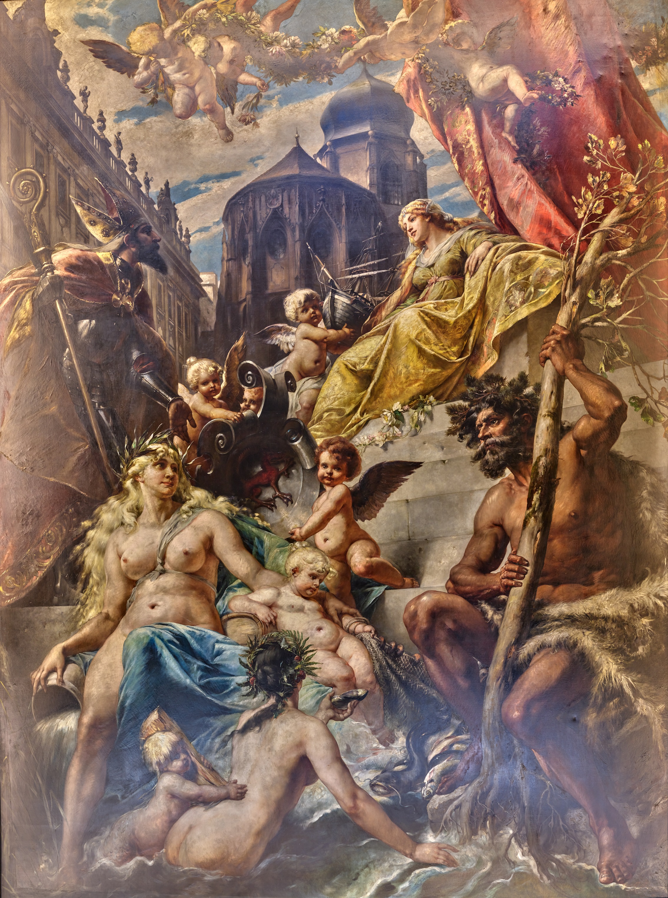 Der Große Rathaussaal ist eine zweischiffige Halle mit drei Jochen. Die Neugestaltung nach den Stadtbränden von 1662 und 1680 erfolgte durch die Dommeister Carlo Lurago und Giovanni Battista Carlone. Die Ausmalung des Saals mit Passauer Stadt- und Geschichtsbildern geschah 1887 bis 1890 durch den Passauer Maler Ferdinand Wagner. Die beiden großen Ölgemälde „Hochzeit Kaiser Leopolds“ und „Einzug der Kriemhild“ wurden im Mai 1892 bzw. im Juli 1893 vollendet.