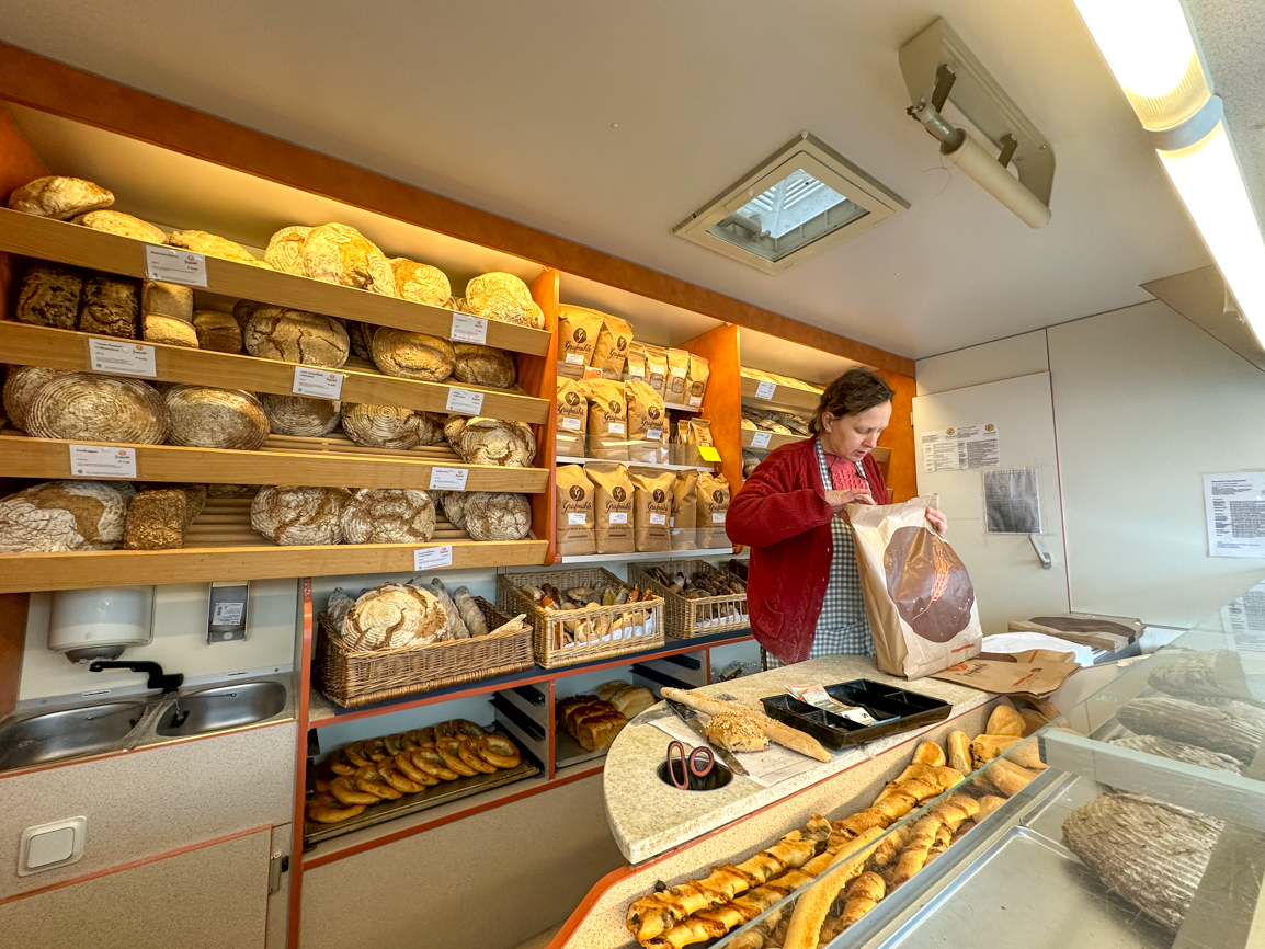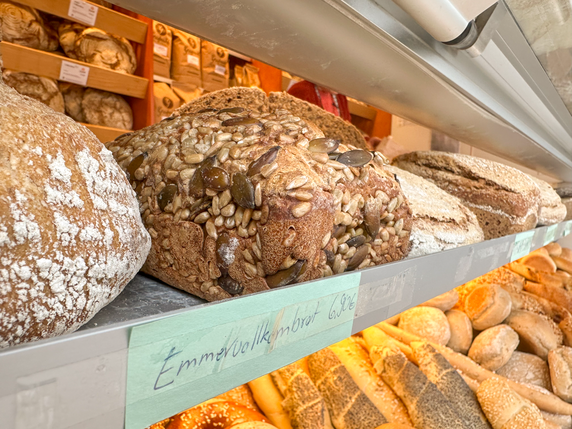 Wie er einen sofort in ein Wohlgefühl versetzt, dieser Duft nach frischem Brot. Oder besser: nach frischen Broten. Denn das Aroma, das aus dem Wagen der Bio-Bäckerei Grafmühle auf den Wochenmarkt strömt, setzt sich aus vielen Sorten zusammen: Emmer-Vollkornbrot. Kürbiskernbrot. Bauernbrot, einmal pur, einmal mit Gewürzen. Dinkelsemmeln. Laugenbrezen.