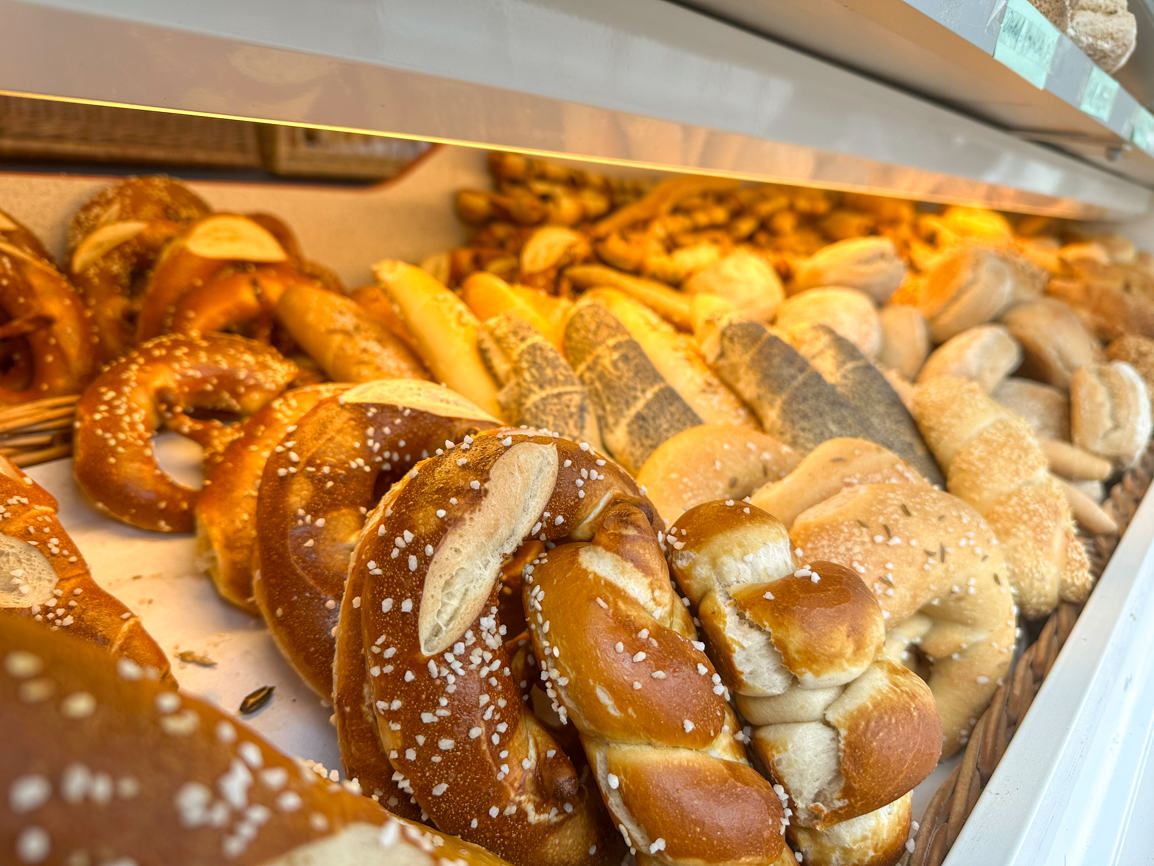 Die meisten Kunden wissen schon, was sie bei Mitarbeiterin Gabi Moos kaufen wollen. Andere wiederum lassen sich beraten. Was Stammkunden auch gerne kaufen, sind Krapfen, Wurzen und Olivenstangerl, zählt Gabi Moos auf.