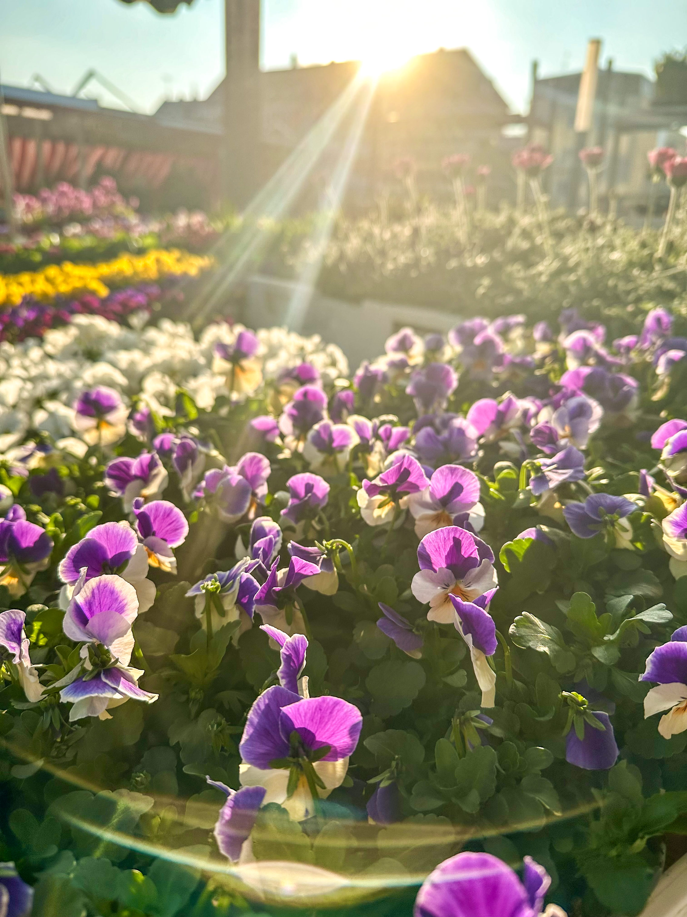Die ersten Sonnenstrahlen klettern über die Dächer und scheinen auf die Pflanzen am Wochenmarkt-Stand von Max Küblbeck. Bunt leuchten die Blüten von Stiefmütterchen, Bellis, Schlüsselblumen und Ranunkeln. „Sechs bis acht Grad Kälte halten die aus“, erklärt er und rückt ein paar Töpfe zurecht.
